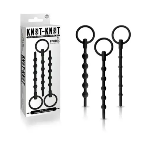 Knot Knot Silicone Urethral Sounding Beads Kit find your perfect match with this 3-piece urethral sounding beads kit, each one offering 5.5 inches in different shapes and textures for you to enjoy. Crafted from lightweight, flexible and hypoallergenic silicone, each urethral sounding beads inserts and flexes with you for comfortable first-time exploration. They are also tipped with a ring pull for simple removal to prevent over-insertion. Always use a sterile, water-based lube with urethral toys to ensure safe, pleasurable insertion.