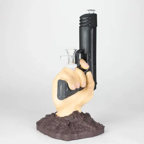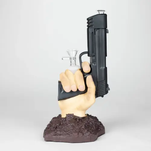 This unique vinyl-crafted Pistol In Hand Silicone water pourer features the striking design of a hand-holding pistol, making it a standout piece for any collection.