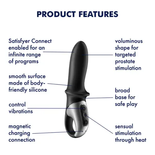 Satisfyer Hot Passion Anal Vibrator Connect App, the ultimate anal vibrator designed to provide intense pleasure and stimulation. Manufactured by Satisfyer, a trusted brand in the adult toy industry, this innovative device offers a range of features that will take your pleasure to new heights. The Hot Passion anal vibrator features a girthy, curved shape with a rounded tip, specifically designed to target the prostate and provide extensive stimulation. Made from soft silicone, its surface feels incredibly natural and comfortable against your skin, enhancing your overall experience. One of the standout features of the Satisfyer Hot Passion is its warming function. With the ability to heat up to 102.2 °F (39°C), this vibrator offers a realistic and authentic sensation. The warming function also improves blood circulation, intensifying the stimulation for maximum pleasure.